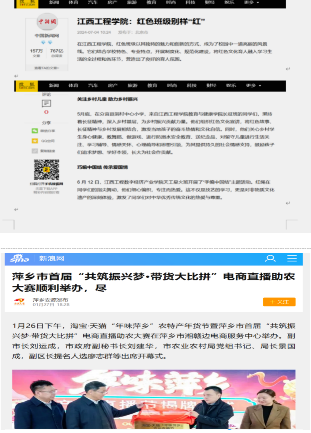 2.新浪网、搜狐网对员工助力乡村振兴及红色文化活动进行了报道